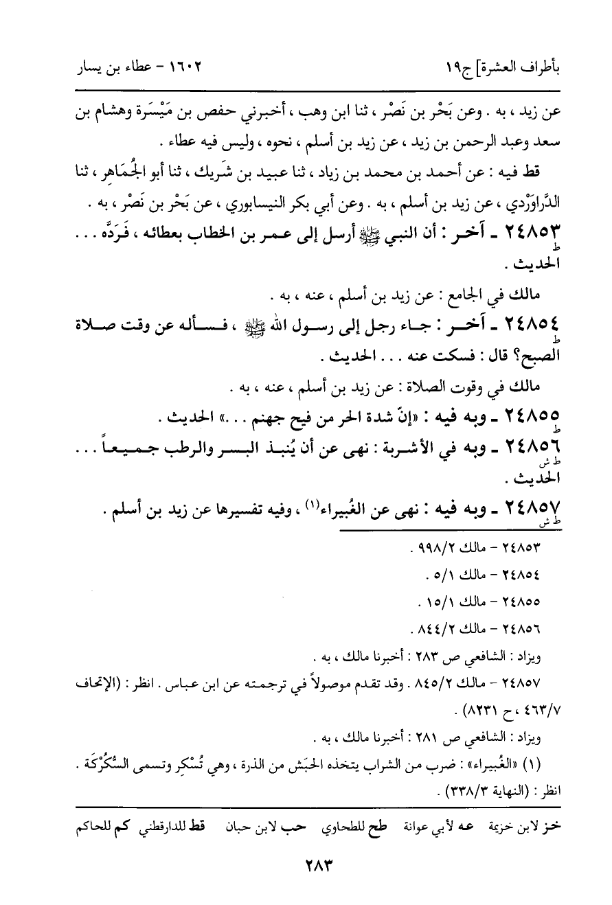 24857 - ط ش - وبه فيه: نهى عن الغُبيراء، وفيه تفسيرها عن زيد بن أسلم.
