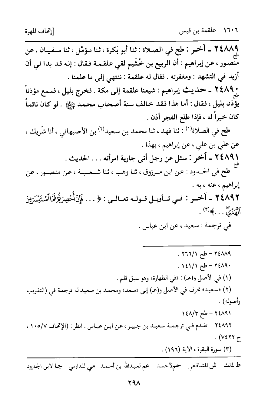 24891 - طح - آخر: سئل عن رجل أتى جارية امرأته ... الحديث. طح في الحدود: عن ابن مرزوق، ثنا وهب، ثنا شعبة، عن منصور، عن إبراهيم، عنه، به.