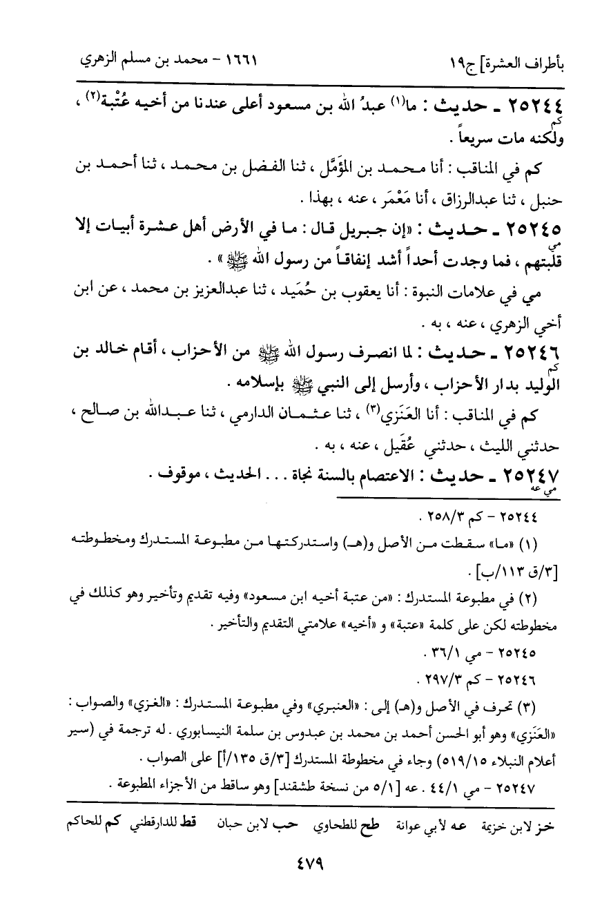 25244 - كم - حديث: ما عبدُ الله بن مسعود أعلى عندنا من أخيه عُتْبة، ولكنه مات سريعاً. كم في المناقب: أنا محمد بن المؤَمَّل، ثنا الفضل بن محمد، ثنا أحمد بن حنبل، ثنا عبد الرزاق، أنا مَعْمَر، عنه، بهذا.