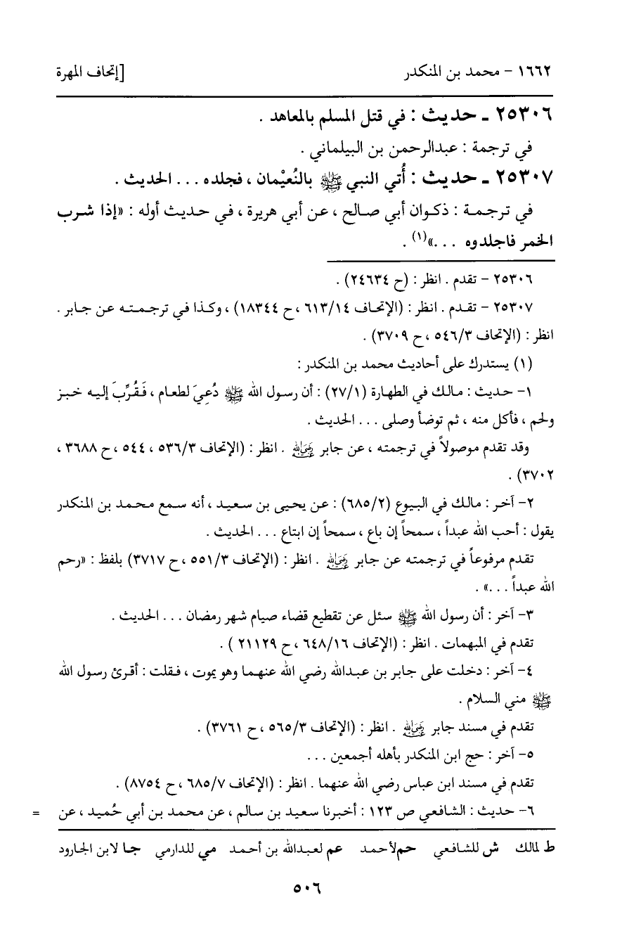 25307 - حديث: أُتي النبي - صَلَّى اللَّهُ عَلَيْهِ وَسَلَّمَ - بالنُعيْمان، فجلده ... الحديث.