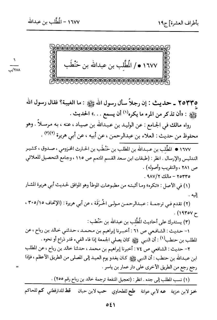 25335 - حديث (ط) : إن رجلاً سأل رسول الله - صَلَّى اللَّهُ عَلَيْهِ وَسَلَّمَ -: ما الغيبة؟ فقال رسول الله - صَلَّى اللَّهُ عَلَيْهِ وَسَلَّمَ -: "أن تذكر من المرء ما يكره أن يسمع…" الحديث.