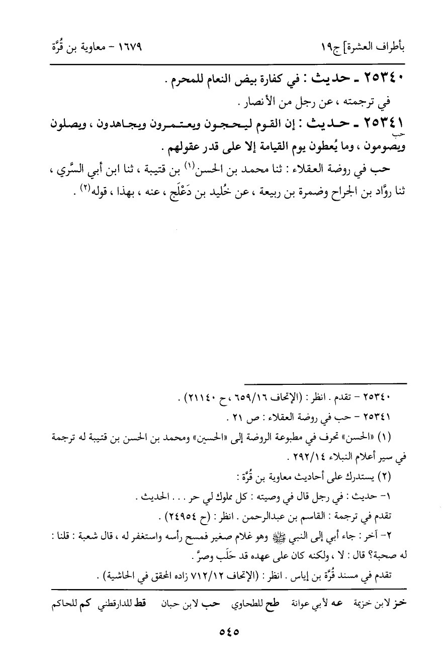 25341 - حديث (حب) : إن القوم ليحجون ويعتمرون ويجاهدون، ويصلون ويصومون، وما يعطون يوم القيامة إلا على قدر عقولهم.