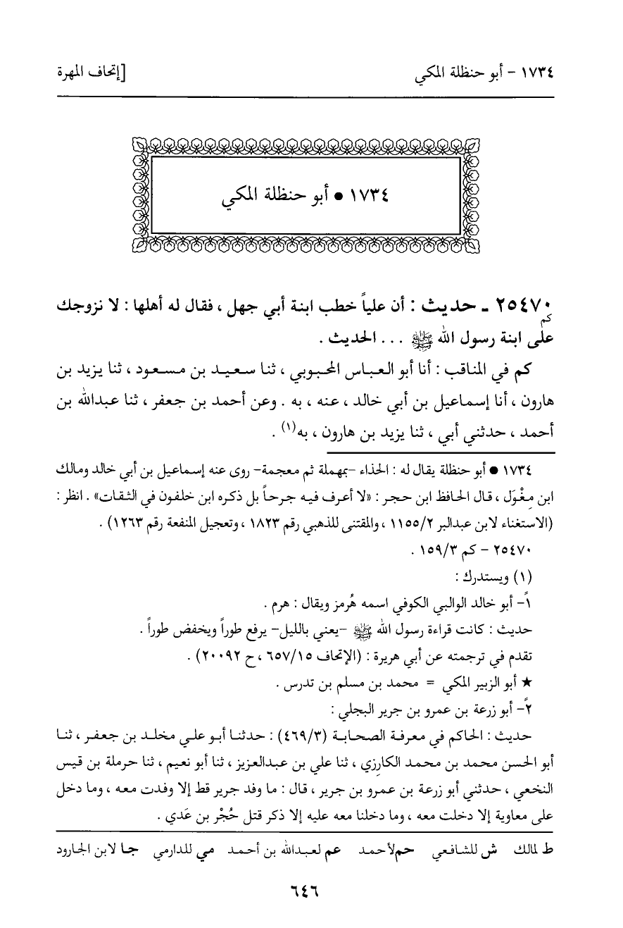 25470 - حديث (كم) : أن علياً خطب ابنة أبي جهل، فقال له أهلها: لا نزوجك على ابنة رسول الله - صَلَّى اللَّهُ عَلَيْهِ وَسَلَّمَ - ... الحديث.