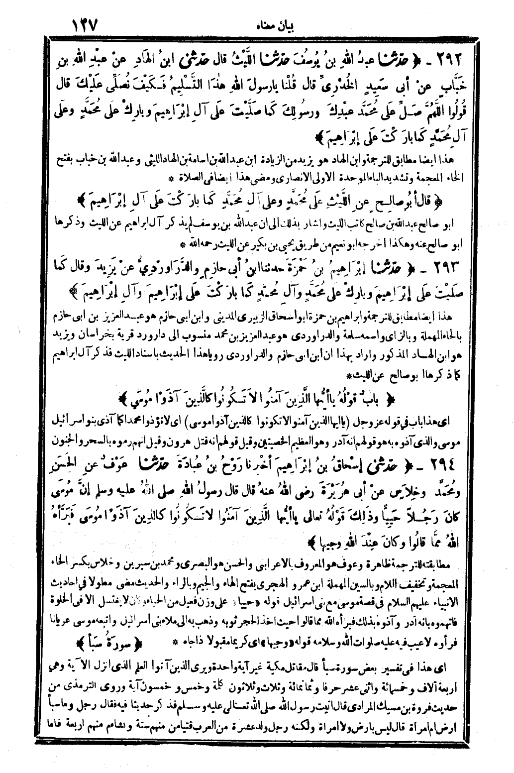حدَّثنا إبْرَاهِيمُ بنُ حَمْزَةَ حَدثنَا ابنُ أبي حازِمٍ والدَّرَاورْدِيُّ عَنْ يَزِيدَ وَقَالَ كَما صَلَّيْتَ عَلَى إبْرَاهِيمَ وبارِكْ عَلَى مُحَمَّدٍ وآلِ مُحَمَّدٍ كَما بارَكْتَ عَلَى إبْرَاهِيمَ وآلِ إبْرَاهِيمَ.