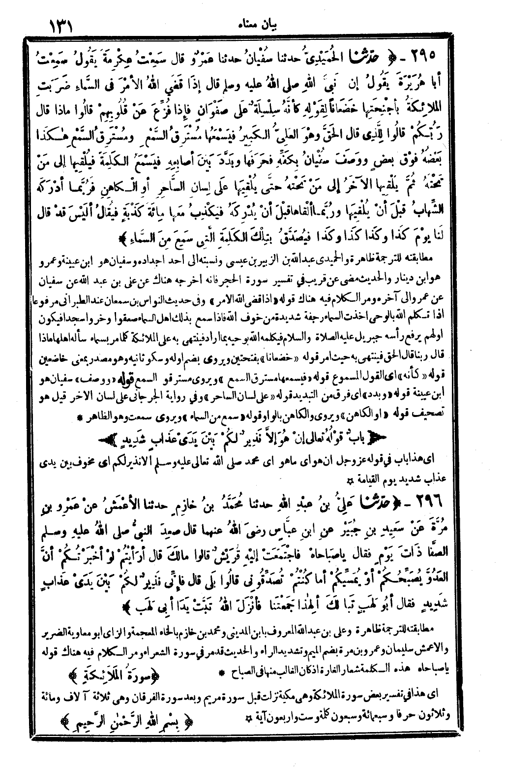 2 - (بَابٌ قَوْلُهُ تَعَالَى: {إنْ هُوَ إلاَّ نَذِيرٌ لَكُمْ بَيْنَ يَدَي عَذَابٍ شَدِيدٍ} (سبأ: 64)