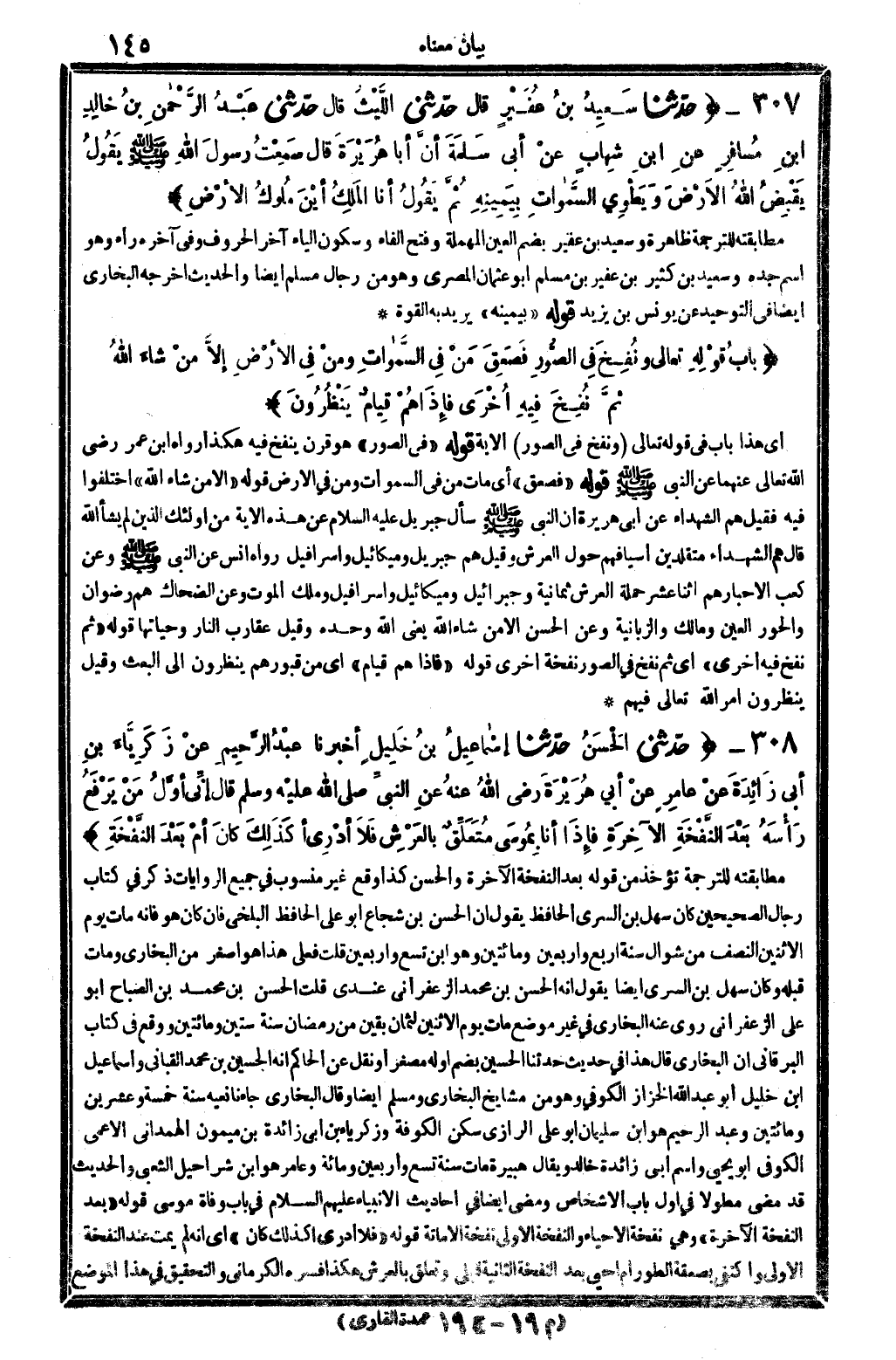 4 - (بابُ قَوْلِهِ تَعَالَى: {ونُفِخَ فِي الصُّوَرِ فَصَعِقَ مَنْ فِي السَّماواتِ ومنْ فِي الأرْضِ إلاَّ مَنْ شاءَ الله ثمَّ نُفِخَ فِيهِ أُخْرَى فإذَا هُمْ قِيامٌ يَنْظُرُونَ} (الزمر: 86)