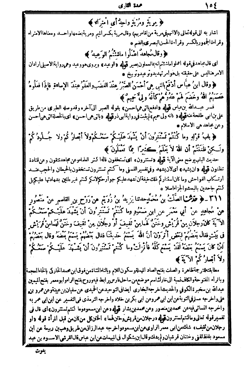 1 - (بابُ قَوْلِهِ: {وَمَا كُنْتُمْ تَسْتَتِرُونَ أنْ يَشْهَدَ عَلَيْكُمْ سَمْعُكُمْ وَلاَ أبْصارُكُمْ وَلَا جُلُودُكُمْ وَلاكنْ ظَنَنْتُمْ أَن الله لاَ يَعْلَمُ كَثِيراً مِمَّا تَعْلَمُونَ} (فصلت: 22)