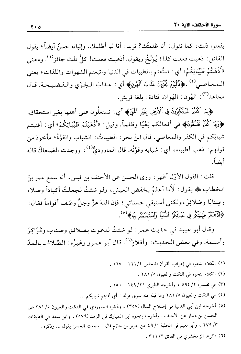وَزَعَمُوا أَنَّ خِرَاشًا نَجَا قَبْلَ عُرْوَةَ. وَقِيلَ: دَحاها: حَرَثَهَا وَشَقَّهَا. قَالَهُ ابْنُ زَيْدٍ. وَقِيلَ: دَحَاهَا مَهَّدَهَا لِلْأَقْوَاتِ. وَالْمَعْنَى مُتَقَارِبٌ. وَقِرَاءَةُ الْعَامَّةِ وَالْأَرْضَ بِالنَّصْبِ، أَيْ دَحَا الْأَرْضَ. وَقَرَأَ الْحَسَنُ وَعَمْرُو بْنُ مَيْمُونٍ (وَالْأَرْضُ) بِالرَّفْعِ، عَلَى الِابْتِدَاءِ، لِرُجُوعِ الْهَاءِ. وَيُقَالُ: دَحَا يَدْحُو دَحْوًا وَدَحَى يَدْحَى دَحْيًا، كَقَوْلِهِمْ: طَغَى يَطْغَى وَيَطْغُو، وَطَغِيَ يَطْغَى، وَمَحَا يَمْحُو وَيَمْحَى، وَلَحَى الْعُودَ يَلْحَى وَيَلْحُو، فَمَنْ قَالَ: يَدْحُو قَالَ دَحَوْتُ وَمَنْ قَالَ يَدْحَى قَالَ دَحَيْتُ. أَخْرَجَ مِنْها أَيْ أَخْرَجَ مِنَ الْأَرْضِ ماءَها أَيِ الْعُيُونَ الْمُتَفَجِّرَةَ بِالْمَاءِ. وَمَرْعاها أَيِ النَّبَاتَ الَّذِي يُرْعَى. وَقَالَ الْقُتَبِيُّ: دَلَّ بِشَيْئَيْنِ عَلَى جَمِيعِ مَا أَخْرَجَهُ مِنَ الْأَرْضِ قُوتًا وَمَتَاعًا لِلْأَنَامِ مِنَ الْعُشْبِ وَالشَّجَرِ وَالْحَبِّ وَالتَّمْرِ وَالْعَصْفِ وَالْحَطَبِ وَاللِّبَاسِ وَالنَّارِ وَالْمِلْحِ، لِأَنَّ النَّارَ مِنَ الْعِيدَانِ وَالْمِلْحَ مِنَ الْمَاءِ. (وَالْجِبالَ أَرْساها) قِرَاءَةُ الْعَامَّةِ وَالْجِبالَ بِالنَّصْبِ، أَيْ وَأَرْسَى الْجِبَالَ أَرْساها يَعْنِي: أَثْبَتَهَا فِيهَا أَوْتَادًا لها. وقرا