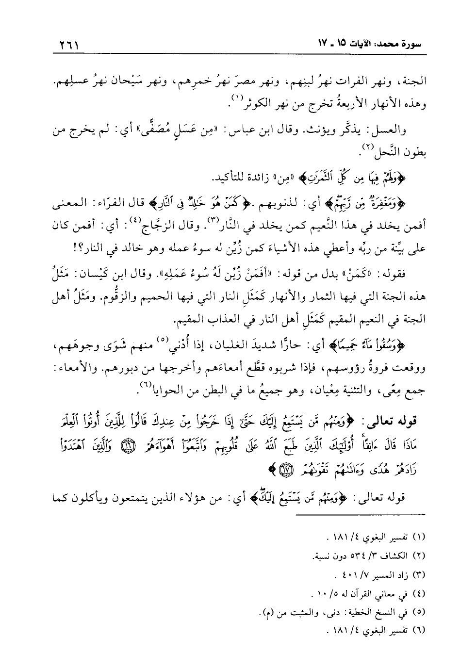 وَقَالَ. أَبُو مُعَاذٍ النَّحْوِيُّ: الرَّيْنُ: أَنْ يَسْوَدَّ الْقَلْبُ مِنَ الذُّنُوبِ، وَالطَّبْعُ أَنْ يُطْبَعَ عَلَى الْقَلْبِ، وَهَذَا أَشَدُّ مِنَ الرَّيْنِ «1»، وَالْإِقْفَالُ أَشَدُّ مِنَ الطَّبْعِ. الزَّجَّاجُ: الرَّيْنُ: هُوَ كَالصَّدَأِ يُغَشِّي الْقَلْبَ كَالْغَيْمِ الرَّقِيقِ، وَمِثْلُهُ الْغَيْنُ، يُقَالُ: غِينَ عَلَى قَلْبِهِ: غُطِّيَ. وَالْغَيْنُ: شَجَرٌ مُلْتَفٌّ، الْوَاحِدَةُ غَيْنَاءُ، أَيْ خَضْرَاءُ، كَثِيرَةُ الْوَرَقِ، مُلْتَفَّةُ الْأَغْصَانِ. وَقَدْ تَقَدَّمَ قَوْلُ الْفَرَّاءِ إِنَّهُ إِحَاطَةُ الذَّنْبِ بِالْقُلُوبِ. وَذَكَرَ الثَّعْلَبِيُّ عَنِ ابْنِ عَبَّاسٍ: رانَ عَلى قُلُوبِهِمْ: أَيْ غَطَّى عَلَيْهَا. وَهَذَا هُوَ الصَّحِيحُ عَنْهُ إِنْ شَاءَ اللَّهُ. وَقَرَأَ حَمْزَةُ وَالْكِسَائِيُّ وَالْأَعْمَشُ وَأَبُو بَكْرٍ وَالْمُفَضَّلُ رانَ بِالْإِمَالَةِ، لِأَنَّ فَاءَ الْفِعْلِ الرَّاءُ، وَعَيْنَهُ الْأَلِفُ مُنْقَلِبَةٌ مِنْ يَاءٍ، فَحَسُنَتِ الْإِمَالَةُ لِذَلِكَ. وَمَنْ فَتَحَ فَعَلَى الْأَصْلِ، لِأَنَّ بَابَ فَاءِ الْفِعْلِ فِي (فَعَلَ) الْفَتْحُ، مِثْلُ كَالَ وَبَاعَ وَنَحْوُهُ. وَاخْتَارَهُ أَبُو عُبَيْدٍ وَأَبُو حَاتِمٍ وَوَقَفَ حَفْصٌ بَلْ ثُمَّ يَبْتَدِئُ رانَ وَقْفًا يُبَيِّنُ اللَّامَ، لَا للسكت. قوله تعالى: (كَلَّا إِنَّهُمْ) أَيْ حَقًّا إِنَّهُمْ يَعْنِي الْكُفَّارَ (عَنْ رَبِّهِمْ يَوْمَئِذٍ) أَيْ يَوْمَ الْقِيَامَةِ (لَمَحْجُوبُونَ). وَقِيلَ: كَلَّا رَدْعٌ وَزَجْرٌ، أَيْ لَيْسَ كَمَا يَقُولُونَ، بَلْ إِنَّهُمْ عَنْ رَبِّهِمْ يَوْمَئِذٍ لَمَحْجُوبُونَ. قَالَ الزَّجَّاجُ: فِي هَذِهِ الْآيَةِ دَلِيلٌ عَلَى أَنَّ اللَّهَ عَزَّ وَجَلَّ يُرَى فِي الْقِيَامَةِ، وَلَوْلَا ذَلِكَ مَا كَانَ فِي هَذِهِ الْآيَةِ فَائِدَةٌ، وَلَا خَسَّتْ مَنْزِلَةُ الْكُفَّارِ بِأَنَّهُمْ يُحْجَبُونَ. وَقَالَ جَلَّ ثَنَاؤُهُ: وُجُوهٌ يَوْمَئِذٍ ناضِرَةٌ، إِلى رَبِّها ناظِرَةٌ [القيامة: 23 - 22] فَأَعْلَمَ اللَّهُ جَلَّ ثَنَاؤُهُ أَنَّ الْمُؤْمِنِينَ يَنْظُرُونَ إِلَيْهِ، وَأَعْلَمَ أَنَّ الْكُفَّارَ مَحْجُوبُونَ عَنْهُ، وَقَالَ مَالِكُ بْنُ أَنَسٍ فِي هَذِهِ الْآيَةِ: لَمَّا حَجَبَ أَعْدَاءَهُ فَلَمْ يَرَوْهُ تَجَلَّى لِأَوْلِيَائِهِ حَتَّى رَأَوْهُ. وَقَالَ الشَّافِعِيُّ: لَمَّا حَجَبَ قَوْمًا بِالسُّخْطِ، دَلَّ عَلَى أَنَّ قَوْمًا يَرَوْنَهُ بِالرِّضَا. ثُمَّ قَالَ: أَمَا وَاللَّهِ لَوْ لَمْ يُوقِنْ مُحَمَّدُ بْنُ إِدْرِيسَ أَنَّهُ يَرَى رَبَّهُ فِي الْمَعَادِ لَمَا عَبَدَهُ فِي الدُّنْيَا. وَقَالَ الْحُسَيْنُ بْنُ الْفَضْلِ: لَمَّا حَجَبَهُمْ فِي الدُّنْيَا عَنْ نُورِ تَوْحِيدِهِ حَجَبَهُمْ فِي الْآخِرَةِ عَنْ رُؤْيَتِهِ. وَقَالَ مُجَاهِدٌ فِي قَوْلِهِ تَعَالَى: لَمَحْجُوبُونَ: أَيْ عَنْ كَرَامَتِهِ وَرَحْمَتِهِ مَمْنُوعُونَ. وَقَالَ قَتَادَةُ: هُوَ أَنَّ اللَّهَ لَا يَنْظُرُ إِلَيْهِمْ بِرَحْمَتِهِ، وَلَا يُزَكِّيهِمْ وَلَهُمْ عَذَابٌ أَلِيمٌ. وَعَلَى الْأَوَّلِ الْجُمْهُورُ، وَأَنَّهُمْ مَحْجُوبُونَ عَنْ رُؤْيَتِهِ فَلَا يَرَوْنَهُ. (ثُمَّ إِنَّهُمْ لَصالُوا الْجَحِيمِ) أي