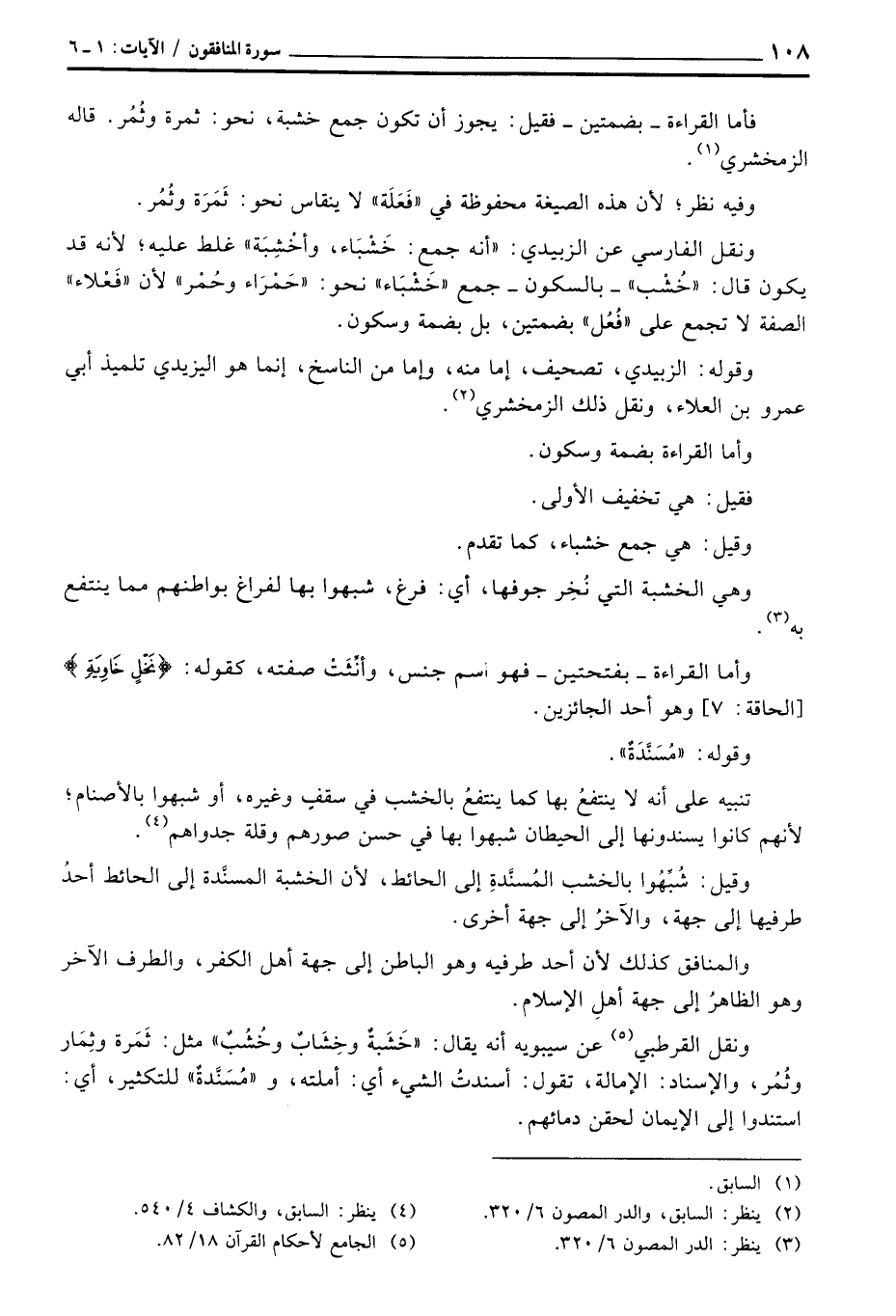 ونقل القرطبي عن سيبويه أنه يقال: «خَشَبةٌ وخِشَابٌ وخُشُبٌ» مثل: ثَمَرة وثِمَار وثُمُر، والإسناد: الإمالة، تقول: أسندتُ الشيء أي: أملته، و «مُسَنَّدةٌ» للتكثير، أي: استندوا إلى الإيمان لحقن دمائهم.