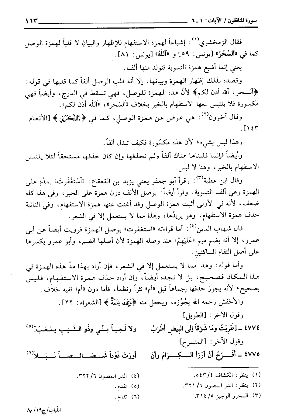 قال شهاب الدين: أما قراءته «استغفرت» بوصل الهمزة فرويت أيضاً عن أبي عمرو، إلا أنه يضم ميم «عَليْهِمُ» عند وصله الهمزة لأن أصلها الضم، وأبو عمرو يكسرها على أصل التقاءِ الساكنينِ.