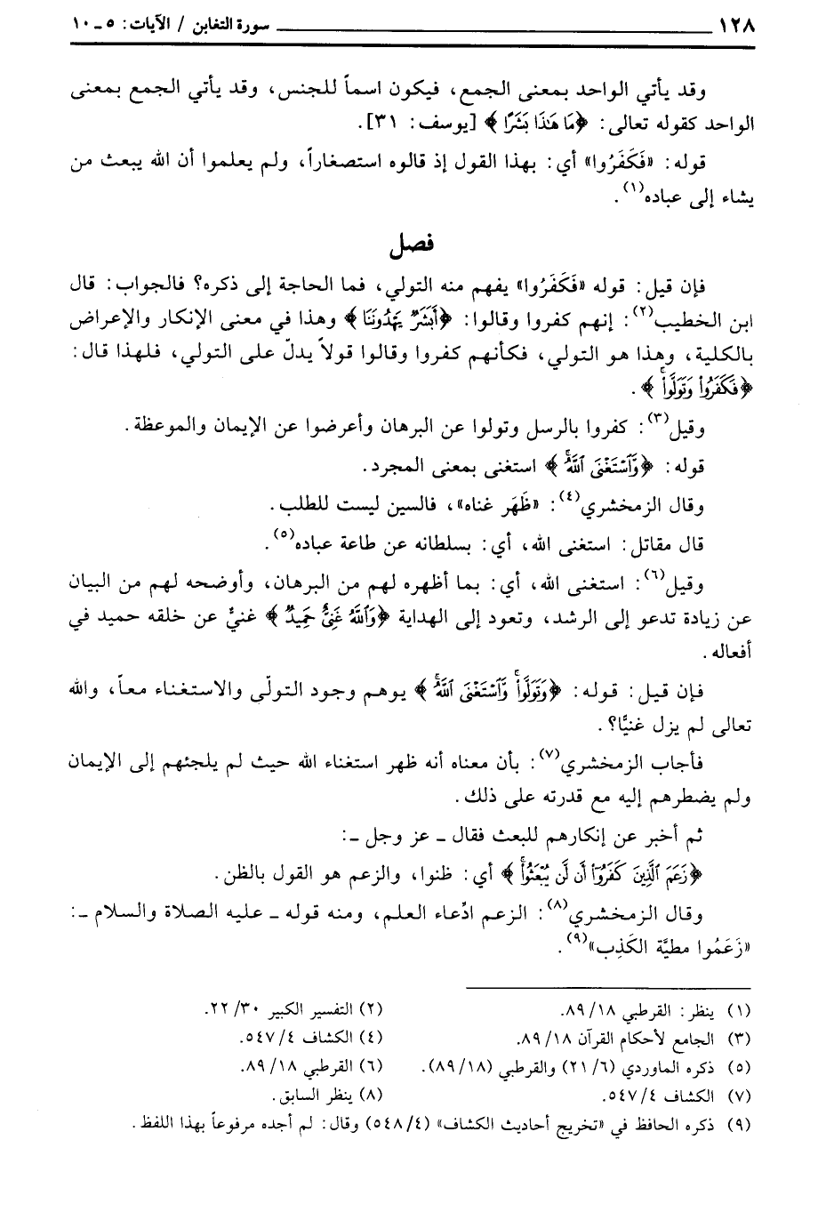 فإن قيل: قوله «فَكَفَرُوا» يفهم منه التولي، فما الحاجة إلى ذكره؟ فالجواب: قال ابن الخطيب: إنهم كفروا وقالوا: {أَبَشَرٌ يَهْدُونَنَا} وهذا في معنى الإنكار والإعراض بالكلية، وهذا هو التولي، فكأنهم كفروا وقالوا قولاً يدلّ على التولي، فلهذا قال: {فَكَفَرُواْ وَتَوَلَّواْ} .