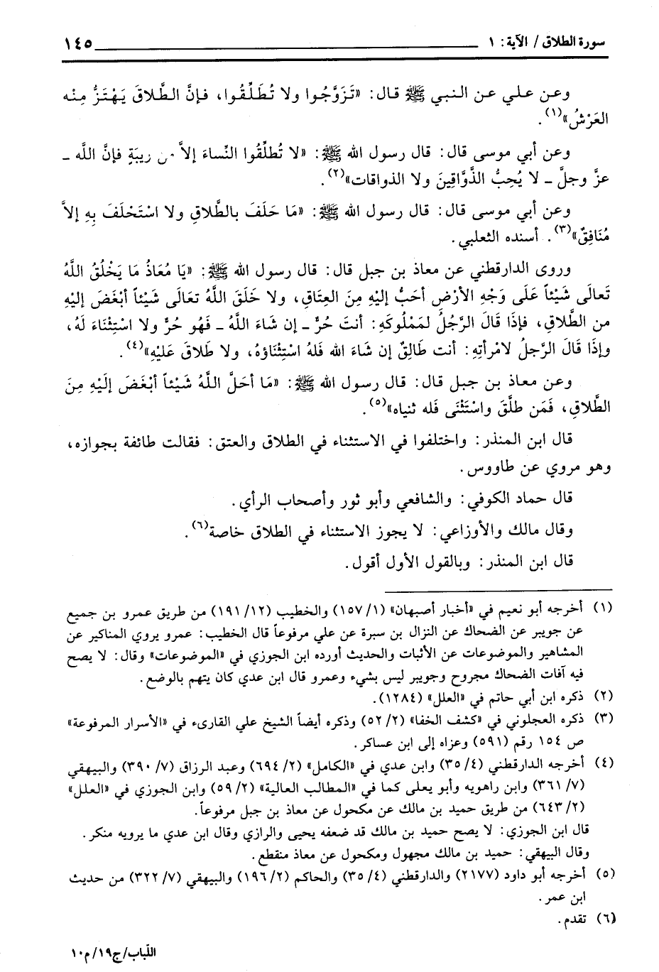 وعن معاذ بن جبل قال: قال رسول الله صَلَّى اللَّهُ عَلَيْهِ وَسَلَّم َ: «مَا أحَلَّ اللَّهُ شَيْئاً أبْغَضَ إلَيْهِ مِنَ الطَّلاقِ، فَمَن طلَّقَ واسْتَثْنَى فَله ثنياه» .