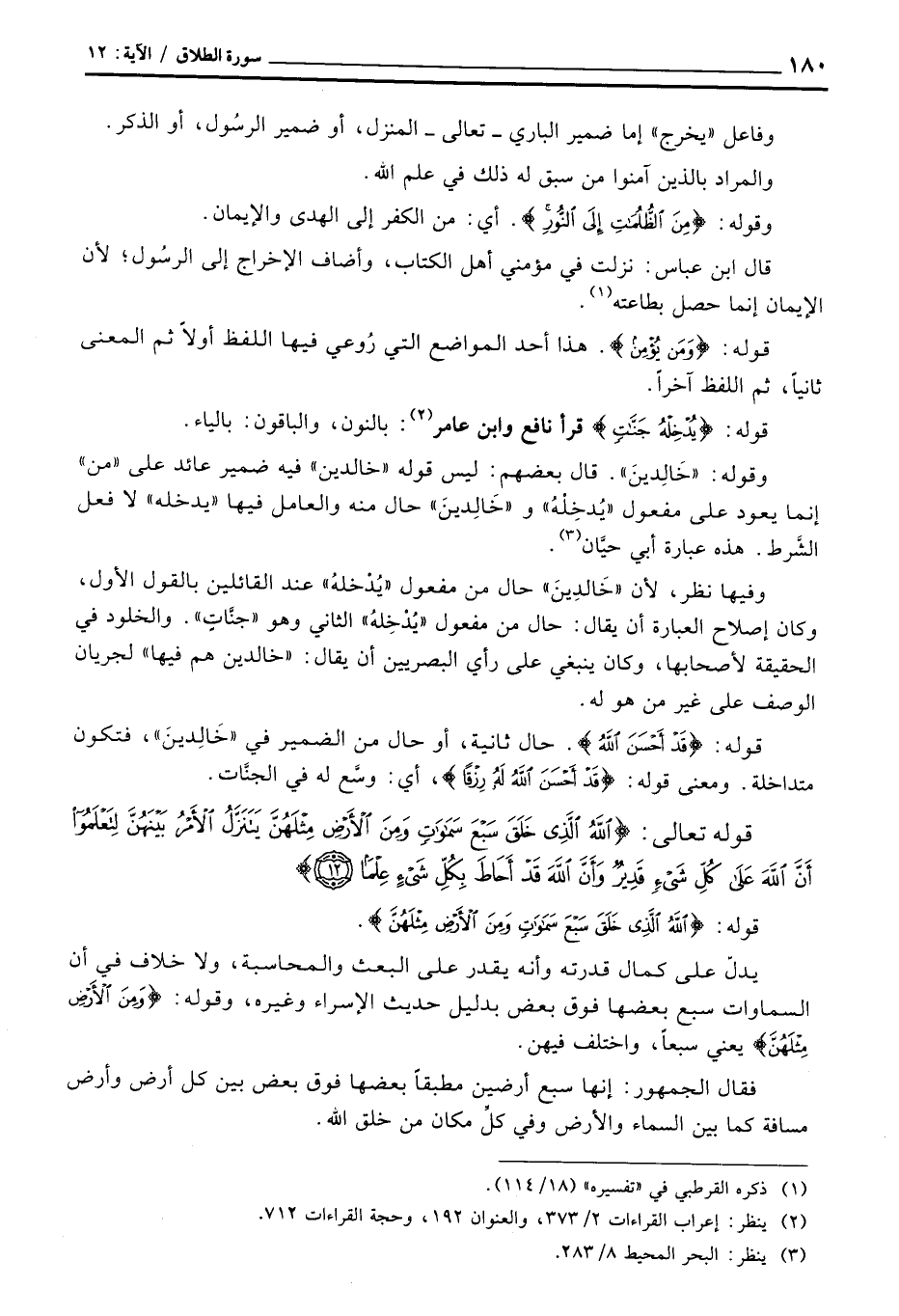 فقال الجمهور: إنها سبع أرضين مطبقاً بعضها فوق بعض بين كل أرض وأرض مسافة كما بين السماء والأرض وفي كلِّ مكان من خلق الله.