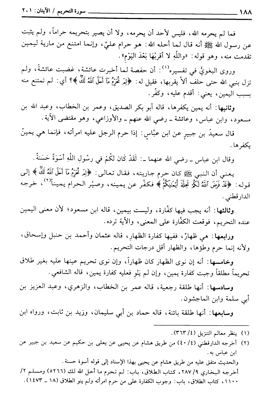 يعني أن النبي صَلَّى اللَّهُ عَلَيْهِ وَسَلَّم َ كان حرم جاريته، فقال تعالى: {لِمَ تُحَرِّمُ مَآ أَحَلَّ الله لَكَ} إلى قوله: {قَدْ فَرَضَ الله لَكُمْ تَحِلَّةَ أَيْمَانِكُمْ} فكفَّر عن يمينه، وصيَّر الحرام يميناً، خرجه الدارقطني.