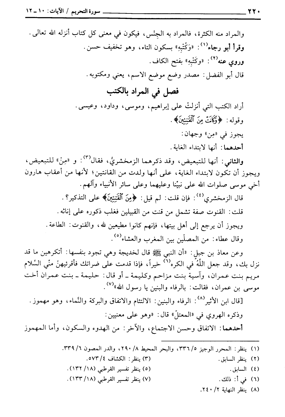والثاني: أنها للتبعيض، وقد ذكرهما الزمخشريُّ، فقال: و «مِنْ» للتبعيض، ويجوز أن تكون لابتداء الغاية، على أنها ولدت من القانتين؛ لأنها من أعقاب هارون أخي موسى صلوات الله على نبيِّنا وعليهما وعلى سائر الأنبياء وآلهم.