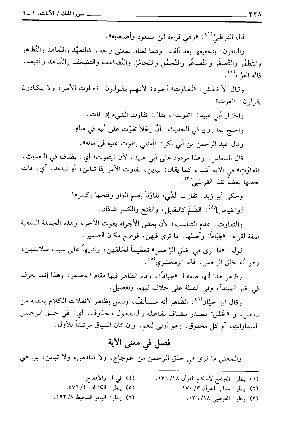 قال النحاس: وهذا مردود على أبي عبيد، لأن «يتفوت» أي: يضاف في الحديث، «تفاوُتٍ» في الآية أشبه، كما يقال: تباين، تفاوت الأمر إذا تباين، أو تباعد، أي: فات بعضها بعضاً نقله القرطبي.