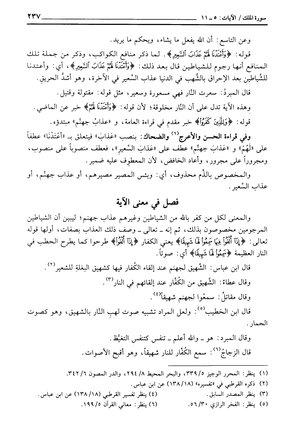 قوله: {وَأَعْتَدْنَا لَهُمْ عَذَابَ السعير} . لما ذكر منافع الكواكب، وذكر من جملة تلك المنافع أنها رجوم للشياطين قال بعد ذلك: {وَأَعْتَدْنَا لَهُمْ عَذَابَ السعير} ، أي: وأعتدنا للشَّياطين بعد الإحراق بالشُّهب في الدنيا عذاب السَّعير في الآخرة، وهو أشدُّ الحريقِ.