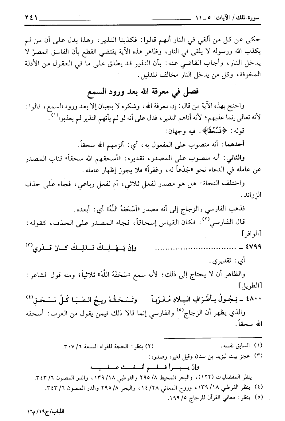والذي يظهر أن الزجاج والفارسي إنما قالا ذلك فيمن يقول من العرب: أسحقه الله سحقاً.