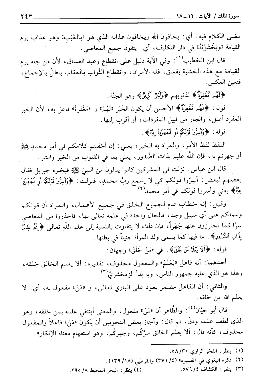 قال ابن الخطيب: وفي الآية دليل على انقطاع وعيد الفساق، لأن من جاء يوم القيامة مع هذه الخشية بفسق، فله الأمران، وانقطاع الثَّواب بالعقاب باطلٌ بالإجماع، فتعين العكس.
