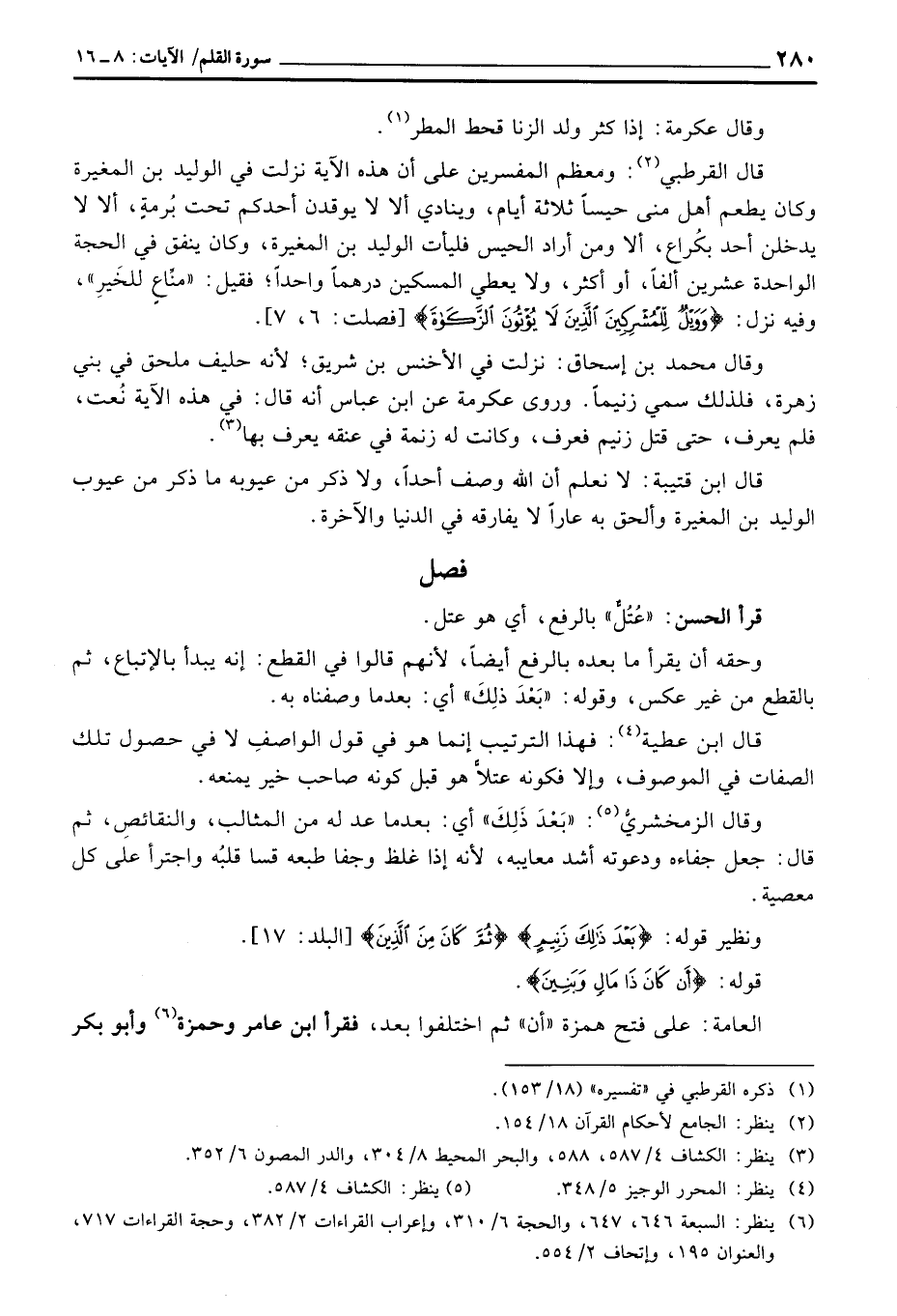قال ابن عطية: فهذا الترتيب إنما هو في قول الواصفِ لا في حصول تلك الصفات في الموصوف، وإلا فكونه عتلاًّ هو قبل كونه صاحب خير يمنعه.