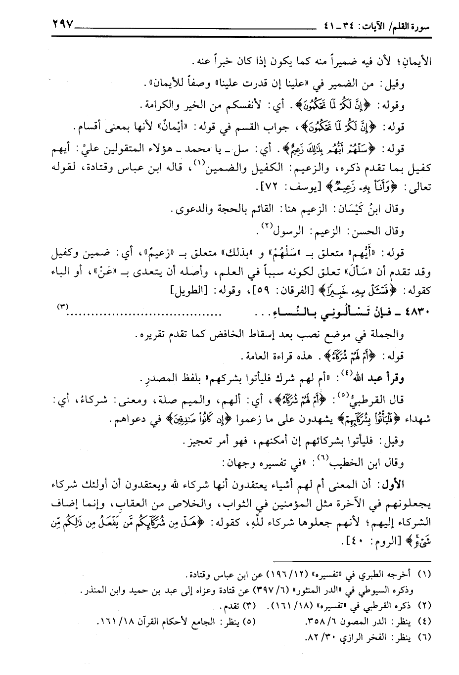 قوله: «أَيُّهم» متعلق ب «سَلْهُمْ» و «بذلك» متعلق ب «زعيمٌ» ، أي: ضمين وكفيل وقد تقدم أن «سَألَ» تعلق لكونه سبباً في العلم، وأصله أن يتعدى ب «عَنْ» ، أو الباء كقوله: