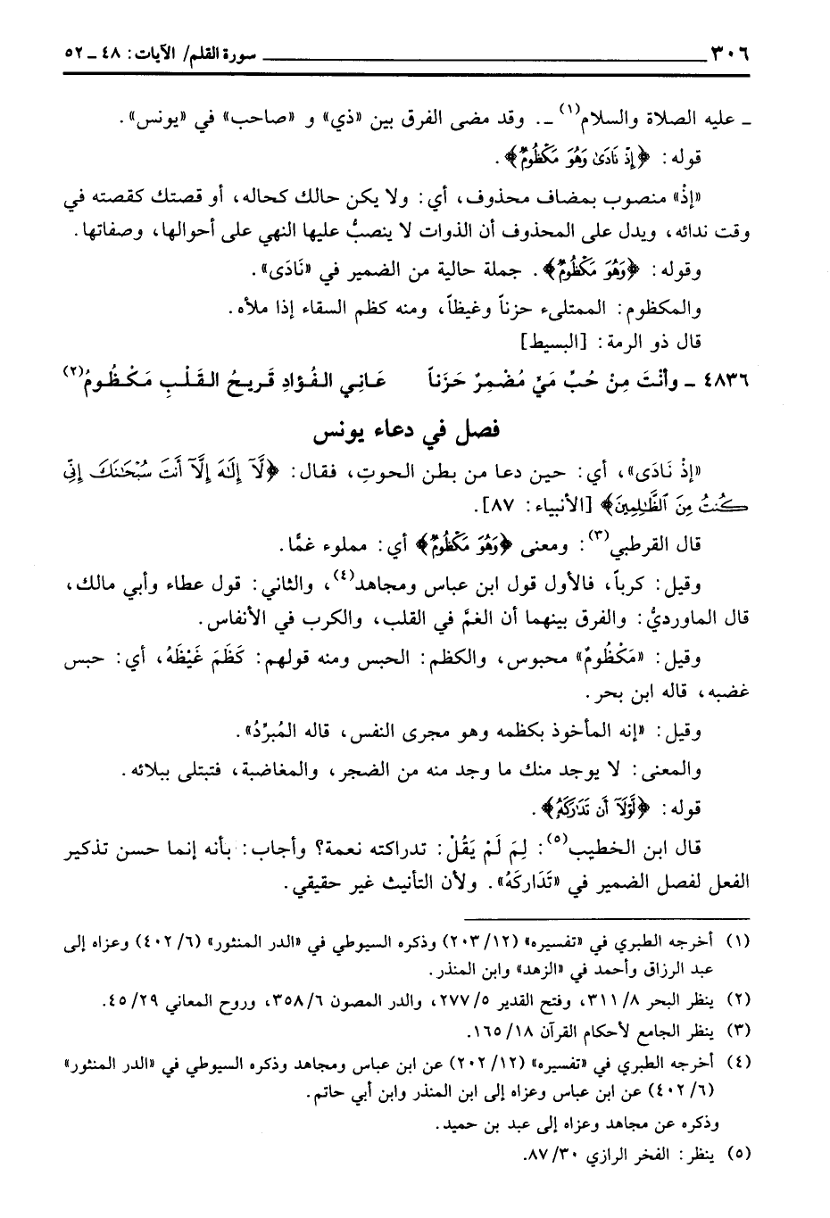 قال القرطبي: ومعنى {وَهُوَ مَكْظُومٌ} أي: مملوء غمًّا.