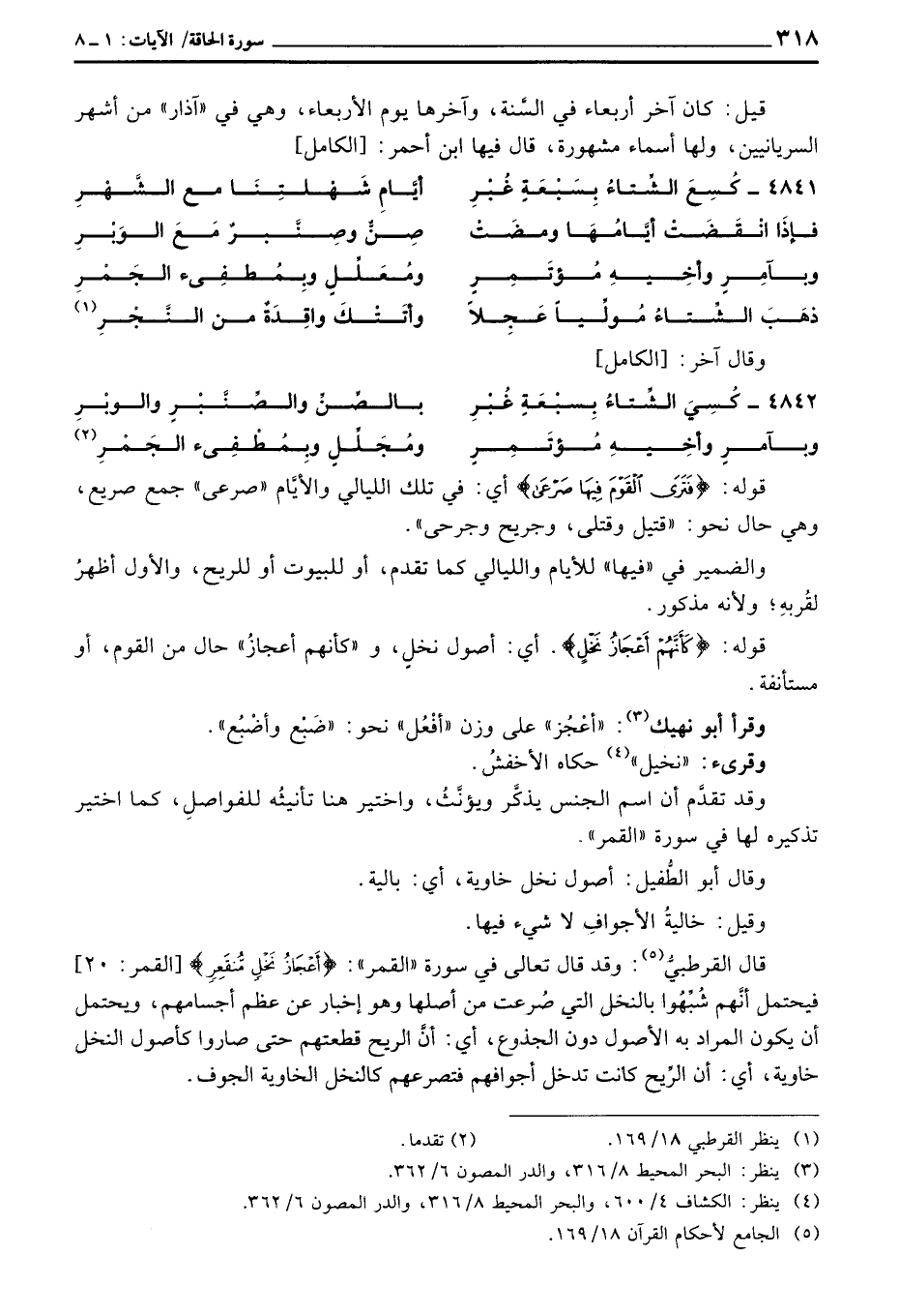 قال القرطبيُّ: وقد قال تعالى في سورة «القمر» : {أَعْجَازُ نَخْلٍ مُّنقَعِرٍ} [القمر: 20] فيحتمل أنَّهم شُبِّهُوا بالنخل التي صُرعت من أصلها وهو أخبار عن عظم أجسامهم، ويحتمل أن يكون المراد به الأصول دون الجذوع، أي: أنَّ الريح قطعتهم حتى صاروا كأصول النخل خاوية، أي: أن الرِّيح كانت تدخل أجوافهم فتصرعهم كالنخل الخاوية الجوف.