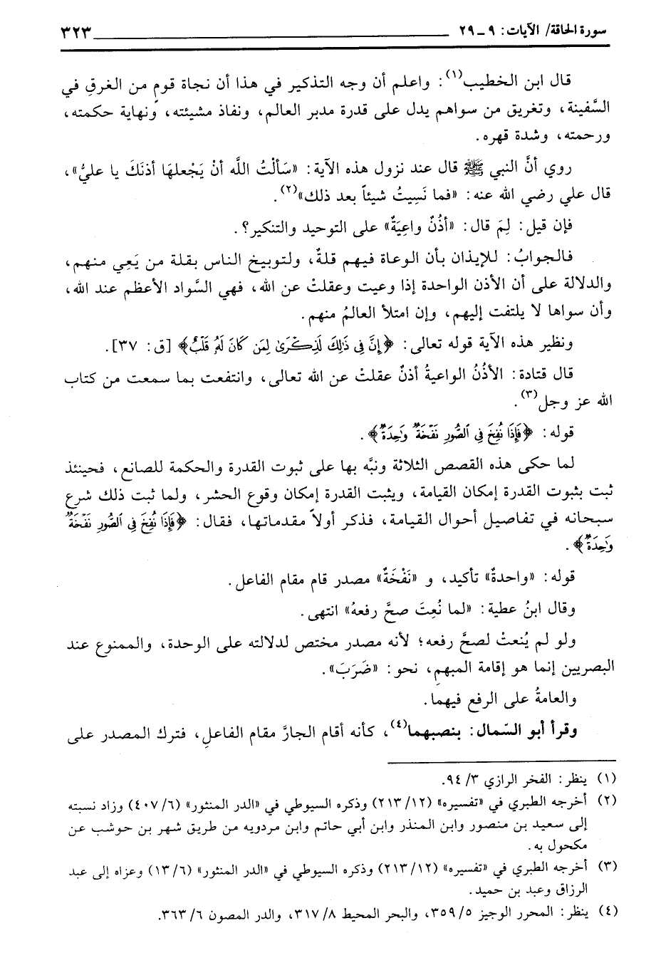 قوله: {فَإِذَا نُفِخَ فِي الصور نَفْخَةٌ وَاحِدَةٌ} .