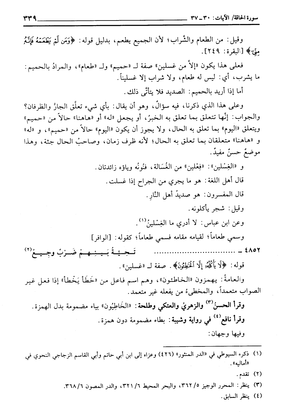 قوله: {لاَّ يَأْكُلُهُ إِلاَّ الخاطئون} . صفة ل «غسلين» .