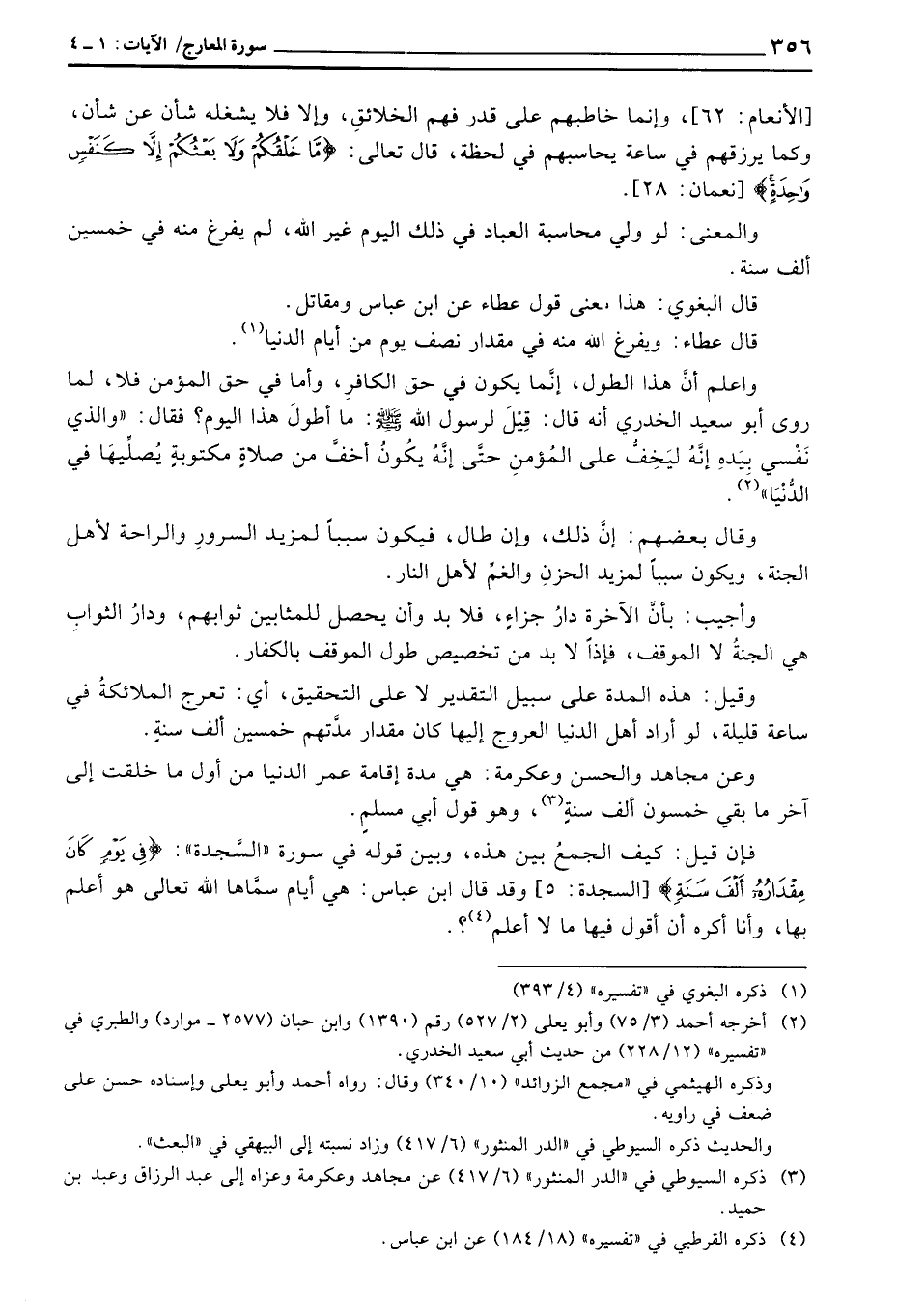 واعلم أنَّ هذا الطول، إنَّما يكون في حق الكافرِ، وأما في حق المؤمن فلا، لما روى أبو سعيد الخدري أنه قال: «قِيْلَ لرسول الله صَلَّى اللَّهُ عَلَيْهِ وَسَلَّم َ: ما أطولَ هذا اليوم؟ فقال:» والذي نَفْسي بِيَدهِ إنَّهُ ليَخِفُّ على المؤمنِ حتَّى إنَّهُ يكُونُ أخفَّ من صلاةٍ مكتوبةٍ يُصلِّيهَا في الدُّنْيَا «» .