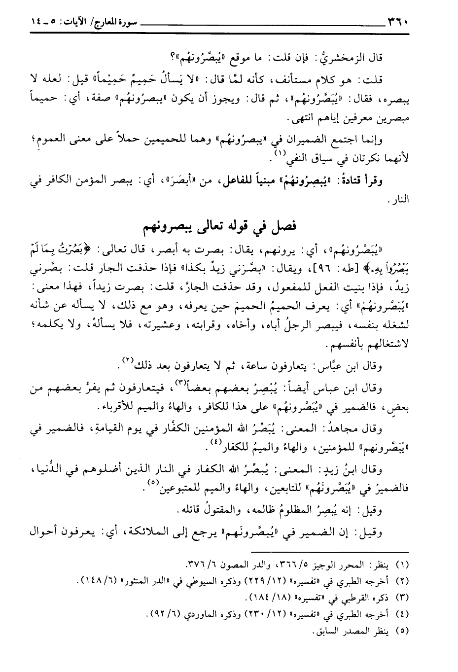 «يُبصَّرُونهُم» ، أي: يرونهم، يقال: بصرت به أبصر، قال تعالى: {بَصُرْتُ بِمَا لَمْ يَبْصُرُواْ بِهِ} [طه: 96] ، ويقال: «بصَّرَني زيدٌ بكذا» فإذا حذفت الجار قلت: بصَّرني زيدٌ، فإذا بنيت الفعل للمفعول، وقد حذفت الجارَّ، قلت: بصرت زيداً، فهذا معنى: «يُبَصَّرونهُمْ» أي: يعرف الحميمُ الحميمَ حين يعرفه، وهو مع ذلك، لا يسأله عن شأنه لشغله بنفسه، فيبصر الرجلُ أباه، وأخاه، وقرابته، وعشيرته، فلا يسألهُ، ولا يكلمه؛ لاشتغالهم بأنفسهم.