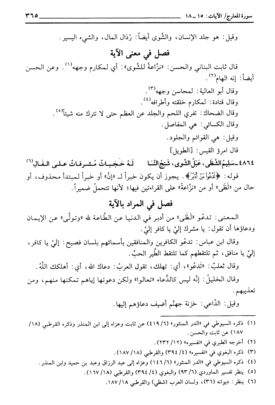 قال ثابت البناني والحسن: «نزَّاعةً للشَّوى» : أي لمكارم وجهه. وعن الحسن أيضاً: إنه الهام.