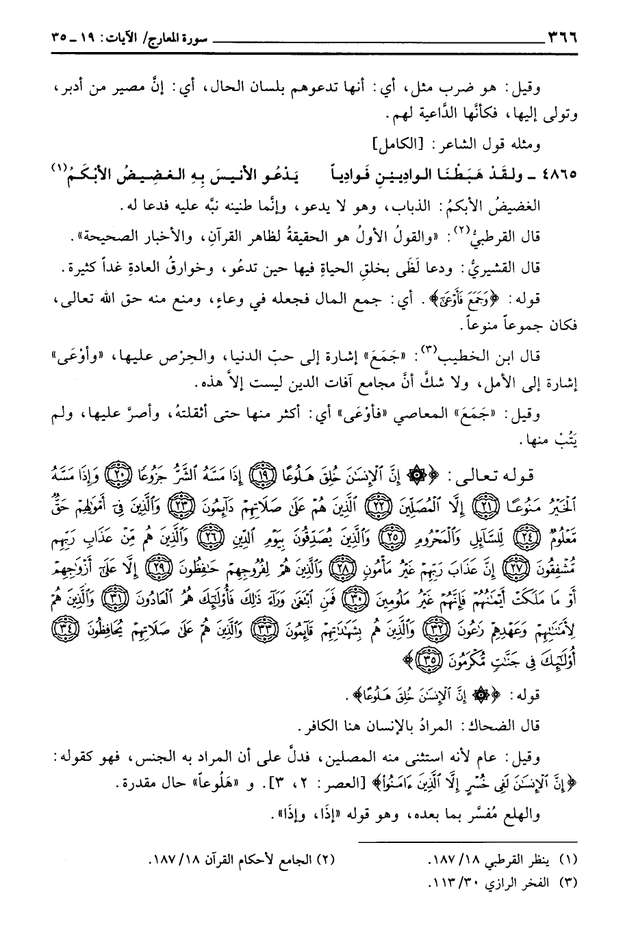 قوله: {إِنَّ الإنسان خُلِقَ هَلُوعاً} .