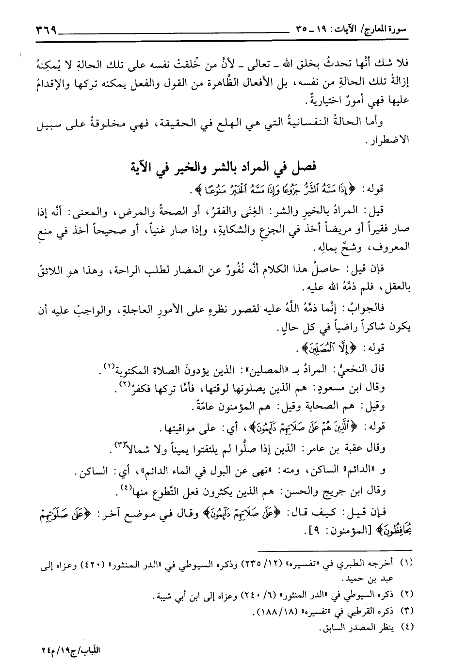 وأما الحالةُ النفسانيةُ التي هي الهلع في الحقيقة، فهي مخلوقةٌ على سبيل الاضطرار.