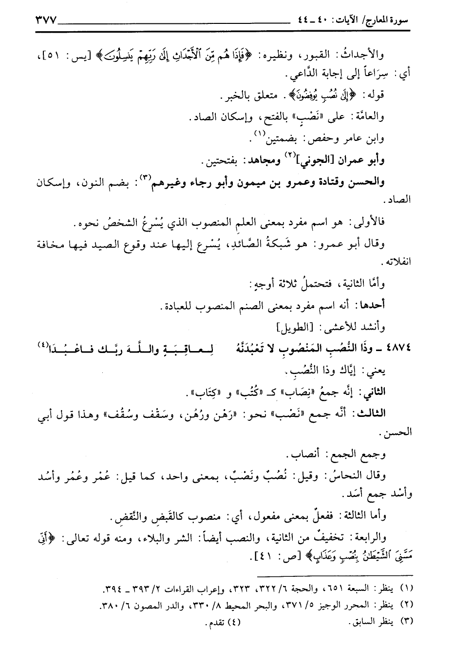 والعامَّة: على «نَصْبٍ» بالفتح، وإسكان الصاد.