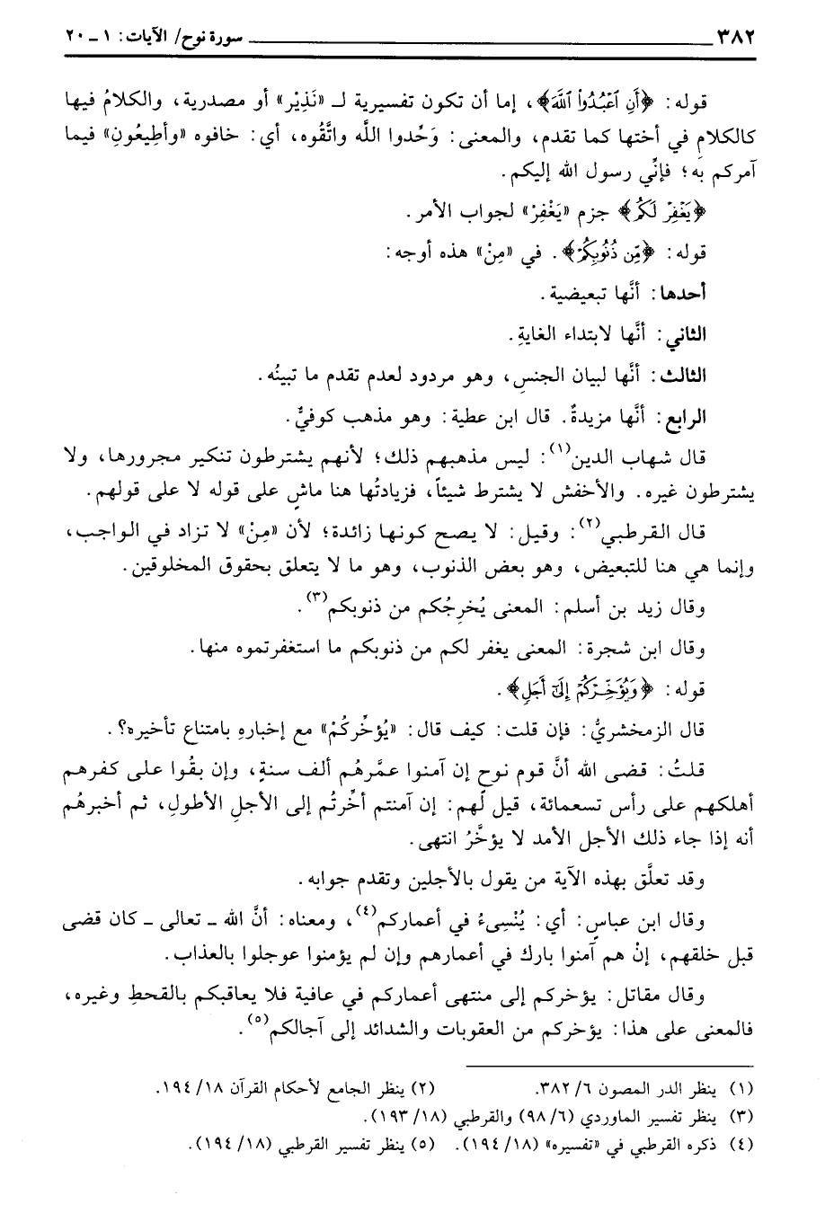 قال القرطبي: وقيل: لا يصح كونها زائدة؛ لأن «مِنْ» لا تزاد في الواجب، وإنما هي هنا للتبعيض، وهو بعض الذنوب، وهو ما لا يتعلق بحقوق المخلوقين.