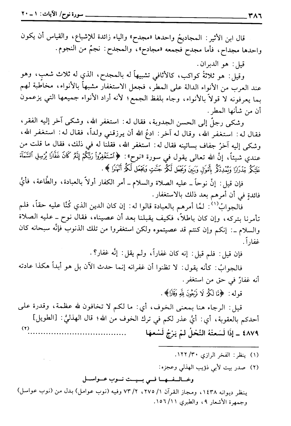 وقيل: هو ثلاثةُ كواكب، كالأثافي تشبيهاً له بالمجدح، الذي له ثلاث شعبٍ، وهو عند العرب من الأنواء الدالة على المطر، فجعل الاستغفار مشبهاً بالأنواء، مخاطبة لهم بما يعرفونه لا قولاً بالأنواء، وجاء بلفظ الجمع؛ لأنه أراد الأنواء جميعها التي يزعمون أن من شأنها المطر.