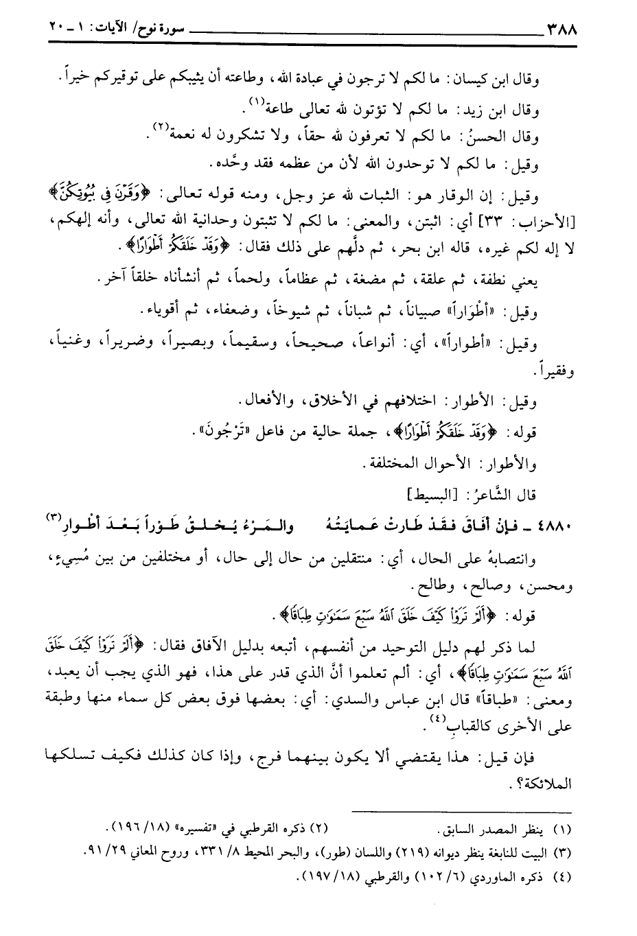 وقيل: إن الوقار هو: الثبات لله عَزَّ وَجَلَّ، ومنه قوله تعالى: {وَقَرْنَ فِي بُيُوتِكُنَّ} [الأحزاب: 33] أي: اثبتن، والمعنى: ما لكم لا تثبتون وحدانية الله تعالى، وأنه إلهكم، لا إله لكم غيره، قاله ابن بحر، ثم دلَّهم على ذلك فقال: {وَقَدْ خَلَقَكُمْ أَطْوَاراً} .