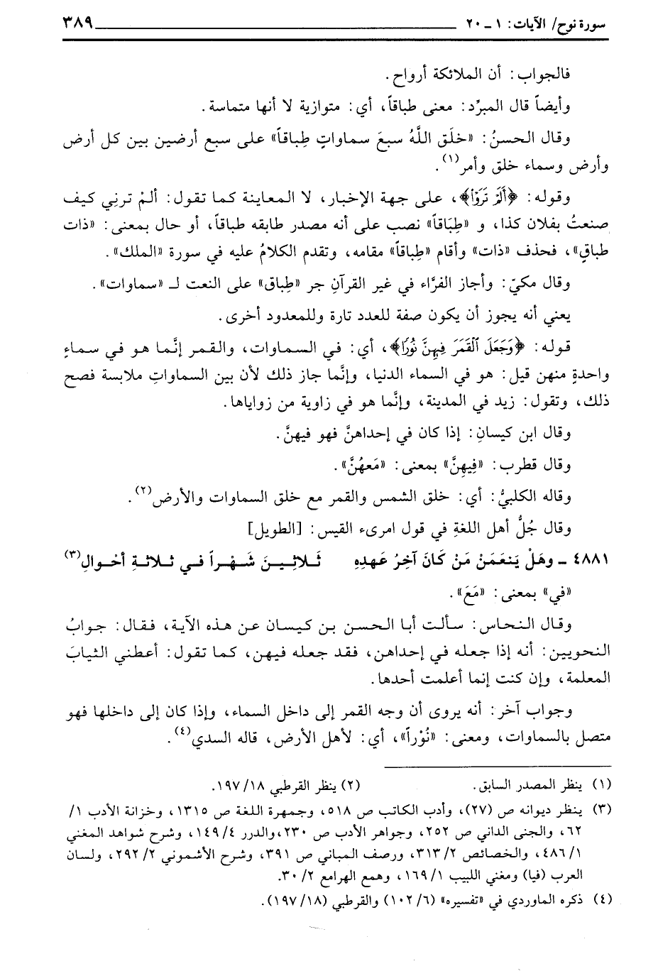 وجواب آخر: أنه يروى أنه وجه القمر إلى داخل السماء، وإذا كان إلى داخلها فهو متصل بالسماوات، ومعنى: «نُوْراً» ، أي: لأهل الأرض، قاله السدي.
