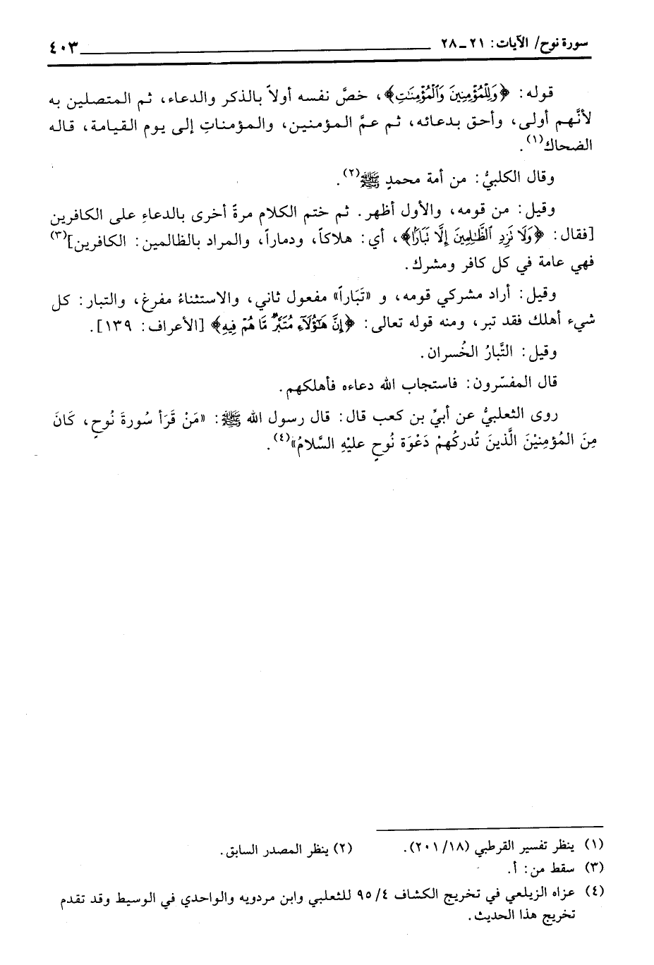 روى الثعلبيُّ عن أبيِّ بن كعب قال: قال رسول الله صَلَّى اللَّهُ عَلَيْهِ وَسَلَّم َ: «مَنْ قَرَأ سُورةَ نُوحٍ، كَانَ مَنَ المُؤمِنْينَ الَّذينَ تُدركُهمْ دَعْوَة نُوحٍ عليْهِ السَّلامُ» .