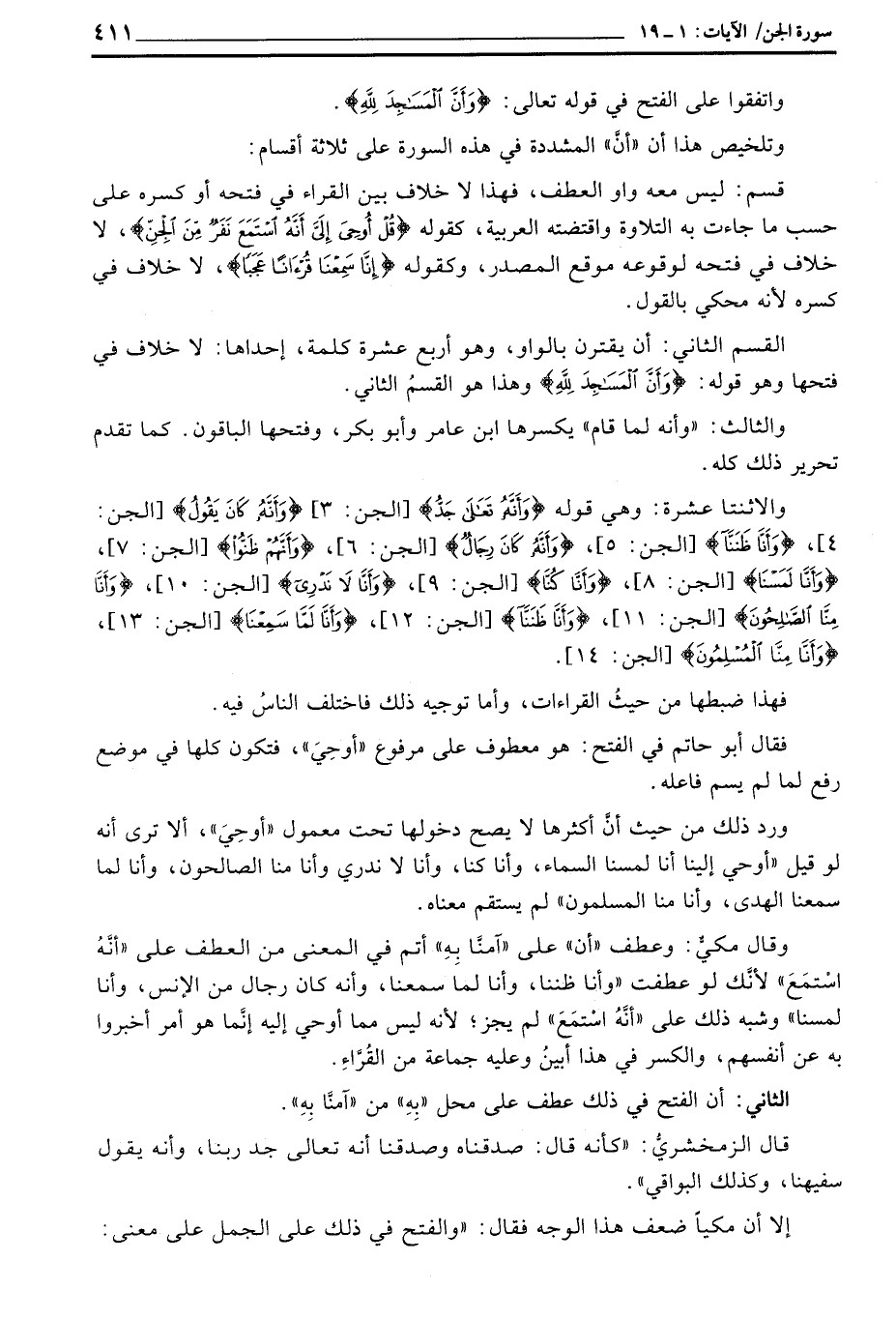 وتلخيص هذه أن «أنَّ» المشددة في هذه السورة على ثلاثة أقسام: