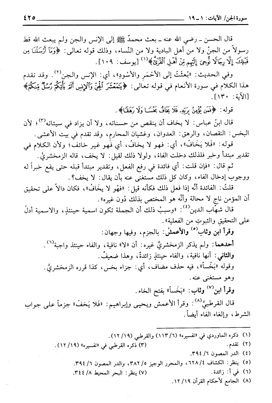 قوله: {فَمَن يُؤْمِن بِرَبِّهِ فَلاَ يَخَافُ بَخْساً وَلاَ رَهَقاً} .