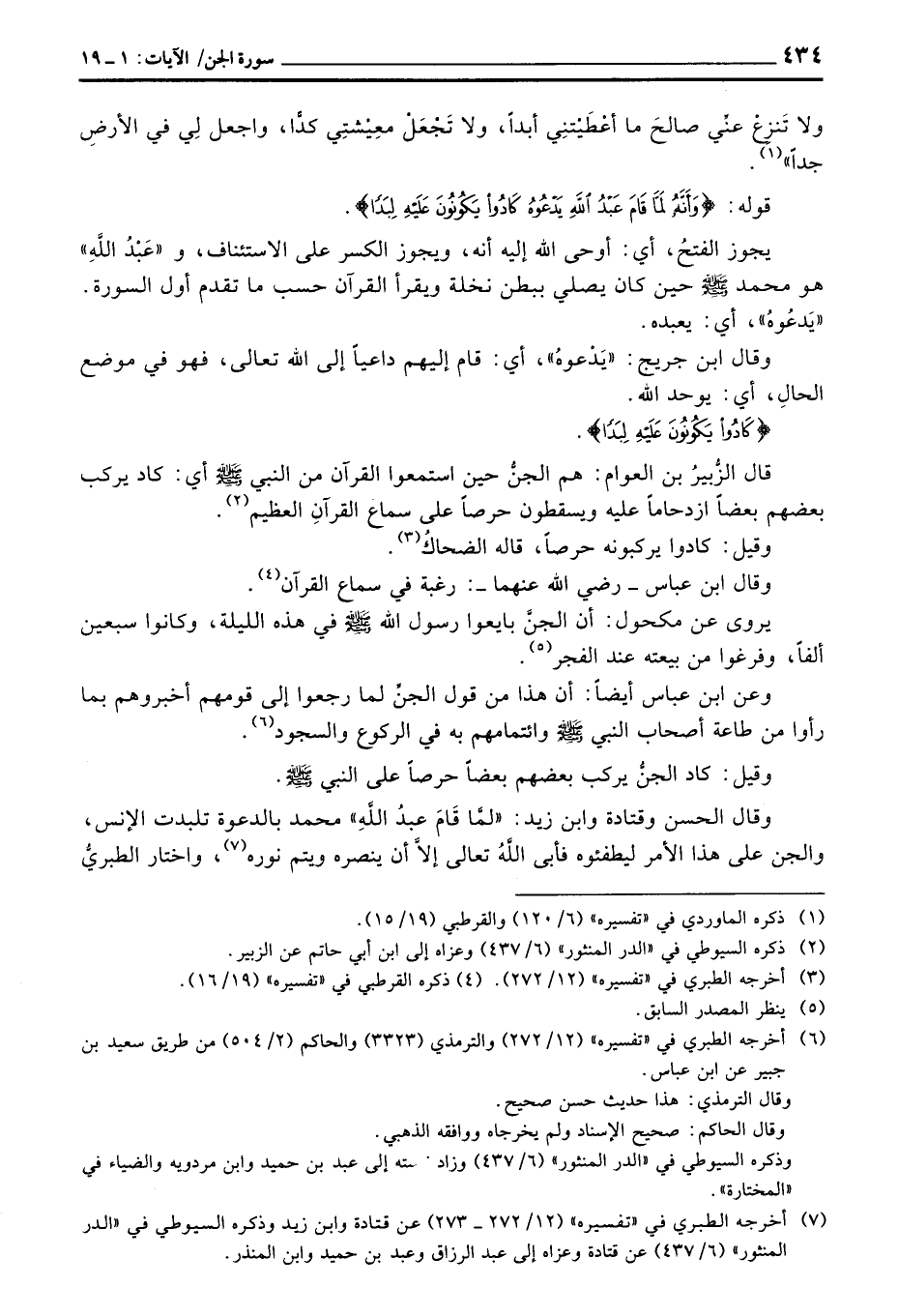 وقال الحسن وقتادة وابن زيد: «لمَّا قَامَ عبدُ اللَّهِ» محمد بالدعوة تلبدت الإنس، والجن على هذا الأمر ليطفئوه فأبى اللَّهُ تعالى إلاَّ أن ينصره ويتم نوره، واختار الطبريُّ