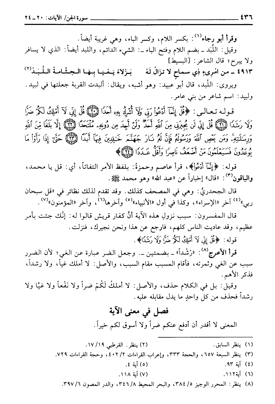 قوله: {قُلْ إِنِّي لاَ أَمْلِكُ لَكُمْ ضَرّاً وَلاَ رَشَدًا} .