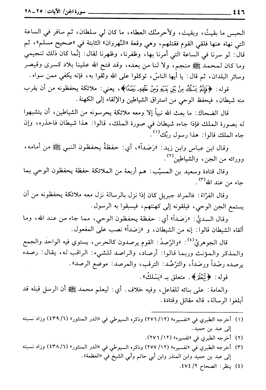 وقال ابن عباس وابن زيد: «رَصَداً» ، أي: حفظةُ يحفظون النبي صَلَّى اللَّهُ عَلَيْهِ وَسَلَّم َ من أمامه، وورائه من الجن، والشياطين.