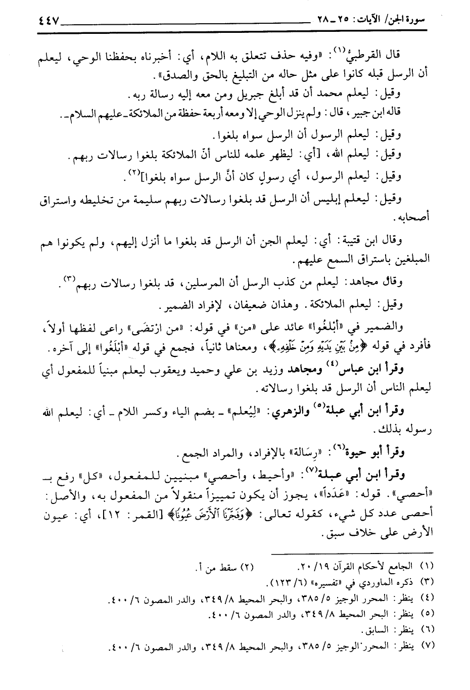 وقيل: ليعلم الرسول، أي رسولٍ كان أنَّ الرسل سواه بلغوا] .