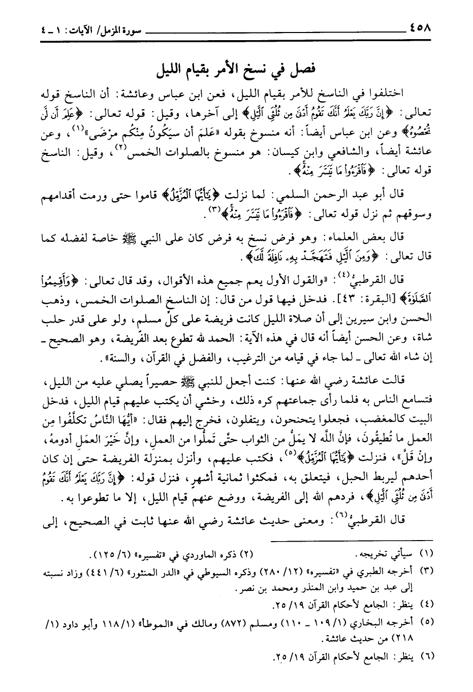 قال القرطبيُّ: «والقول الأول يعم جميع هذه الأقوال، وقد قال تعالى: {وَأَقِيمُواْ الصلاة} [البقرة: 43] . فدخل فيها قول من قال: إن الناسخِ الصلوات الخمس، وذهب الحسن وابن سيرين إلى أن صلاة الليل كانت فريضة على كلِّ مسلمٍ، ولو على قدر حلب شاة، وعن الحسن أيضاً أنه قال في هذه الآية: الحمد لله تطوع بعد الفريضة، وهو الصحيح - إن شاء الله تعالى - لما جاء في قيامه من الترغيب، والفضل في القرآن، والسنة» .