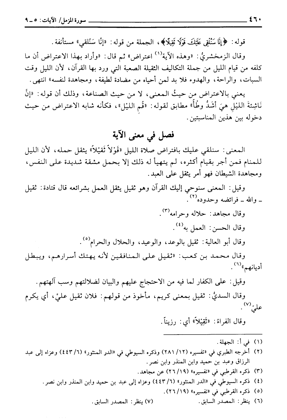 المعنى: سنلقي عليك بافتراض صلاة الليل «قَوْلاً ثَقيْلاً» يثقل حمله، لأن الليل للمنام فمن أجر بقيام أكثره، لم يتهيأ له ذلك إلا بحمل مشقة شديدة على النفس، ومجاهدة الشيطان فهو أمر يثقل على العبد.
