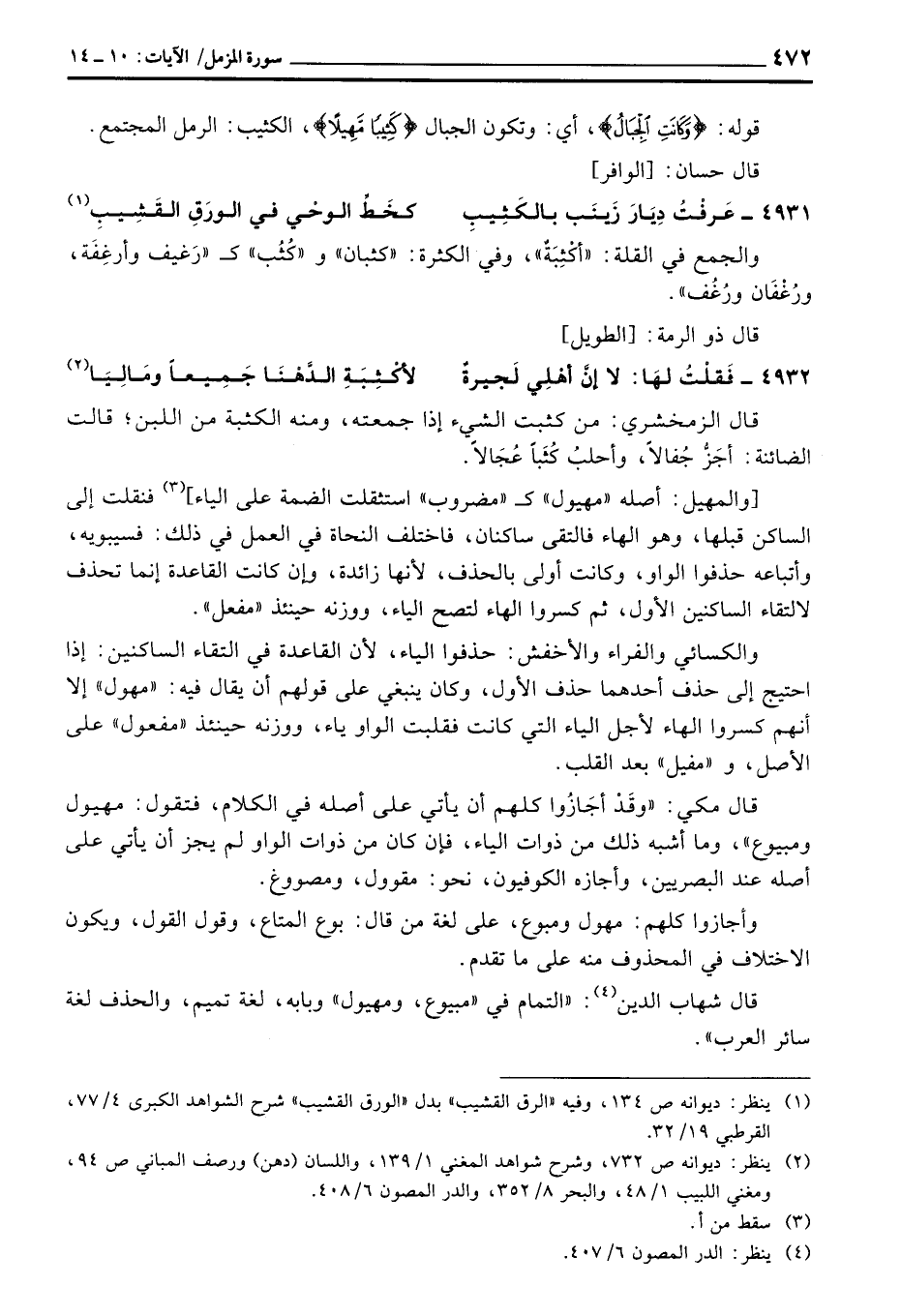 [والمهيل: أصله» مهيول «ك» مضروب «استثقلت الضمة على الياء] فنقلت إلى الساكن قبلها، وهو الهاء فالتقى ساكنان، فاختلف النحاة في العمل في ذلك: فسيبويه، وأتباعه حذفوا الواو، وكانت أولى بالحذف، لأنها زائدة، وإن كانت القاعدة إنما تحذف لالتقاء الساكنين الأول، ثم كسروا الهاء لتصح الياء، ووزنه حينئذ» مفعل «.